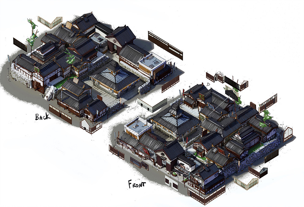 Low Poly building models, LODs, vertex shading, baked lighting/AO, hand authored textures