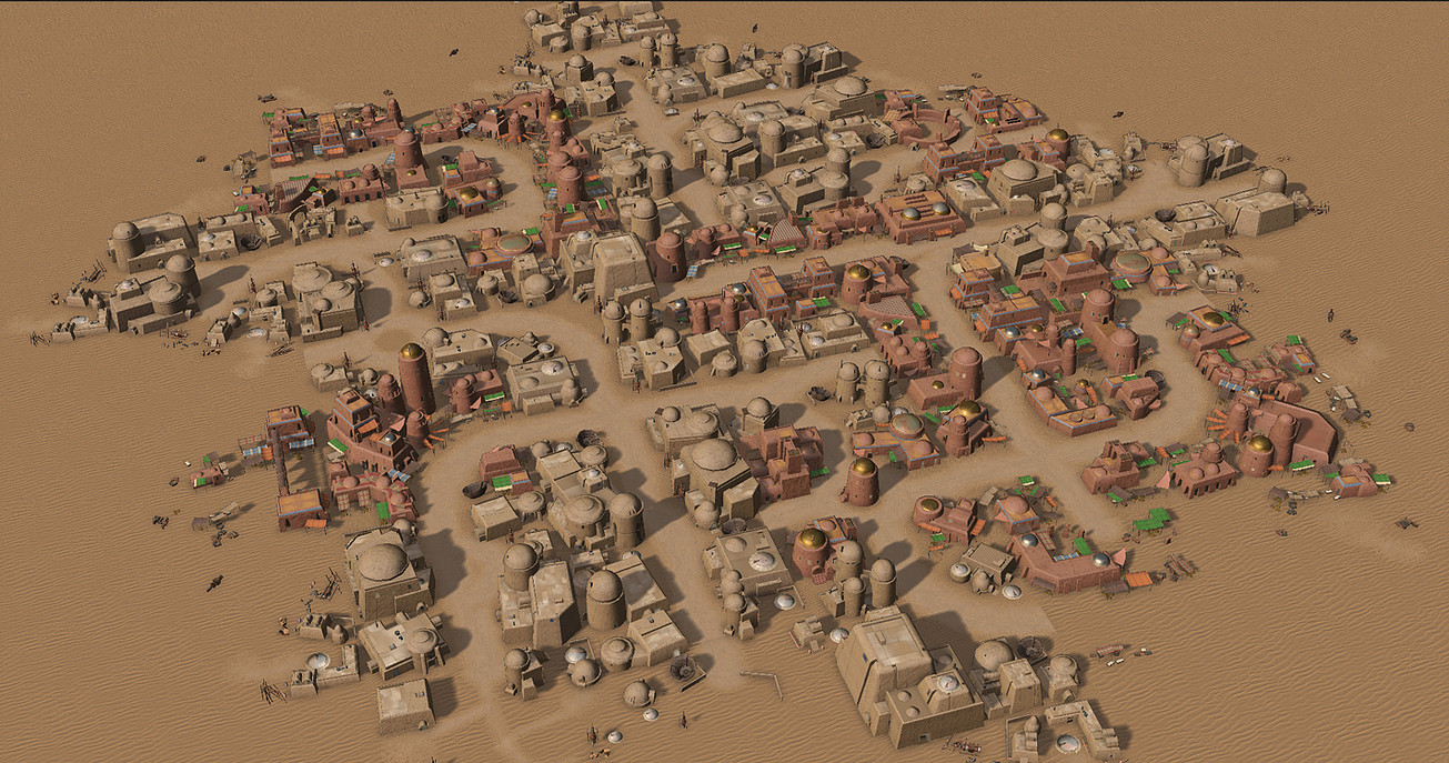 Implemented a content creation tool which allowed artists to build structures from a library of modular architectural pieces. Based on Tatooine style guides in collaboration with Lucas films.